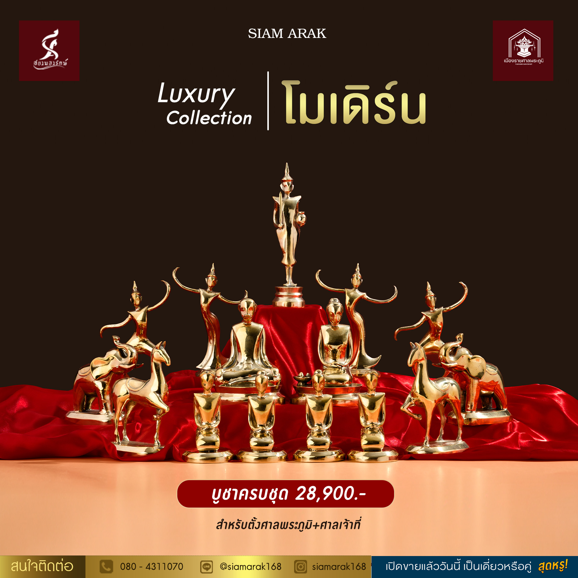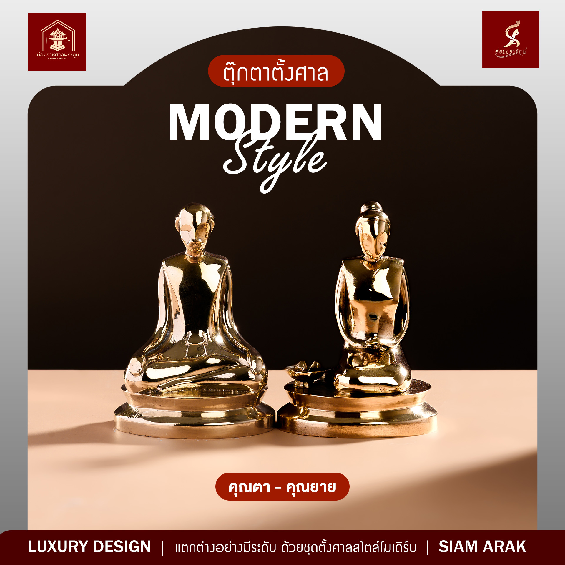 เอกลักษ์เหนือใคร ทุกสไตล์การตั้งศาล ด้วย ตุ๊กตาตั้งศาลทองเหลืองแท้ขัดเงา เสริมความเฮงระดับไฮคลาส ยกระดับความหรู คู่ศาลของคุณ เปิดให้บูชาครบชุด เจ้าแรกเจ้าเดียวในสยามประเทศ แบรนด์ใหม่ “สยามอารักษ์”